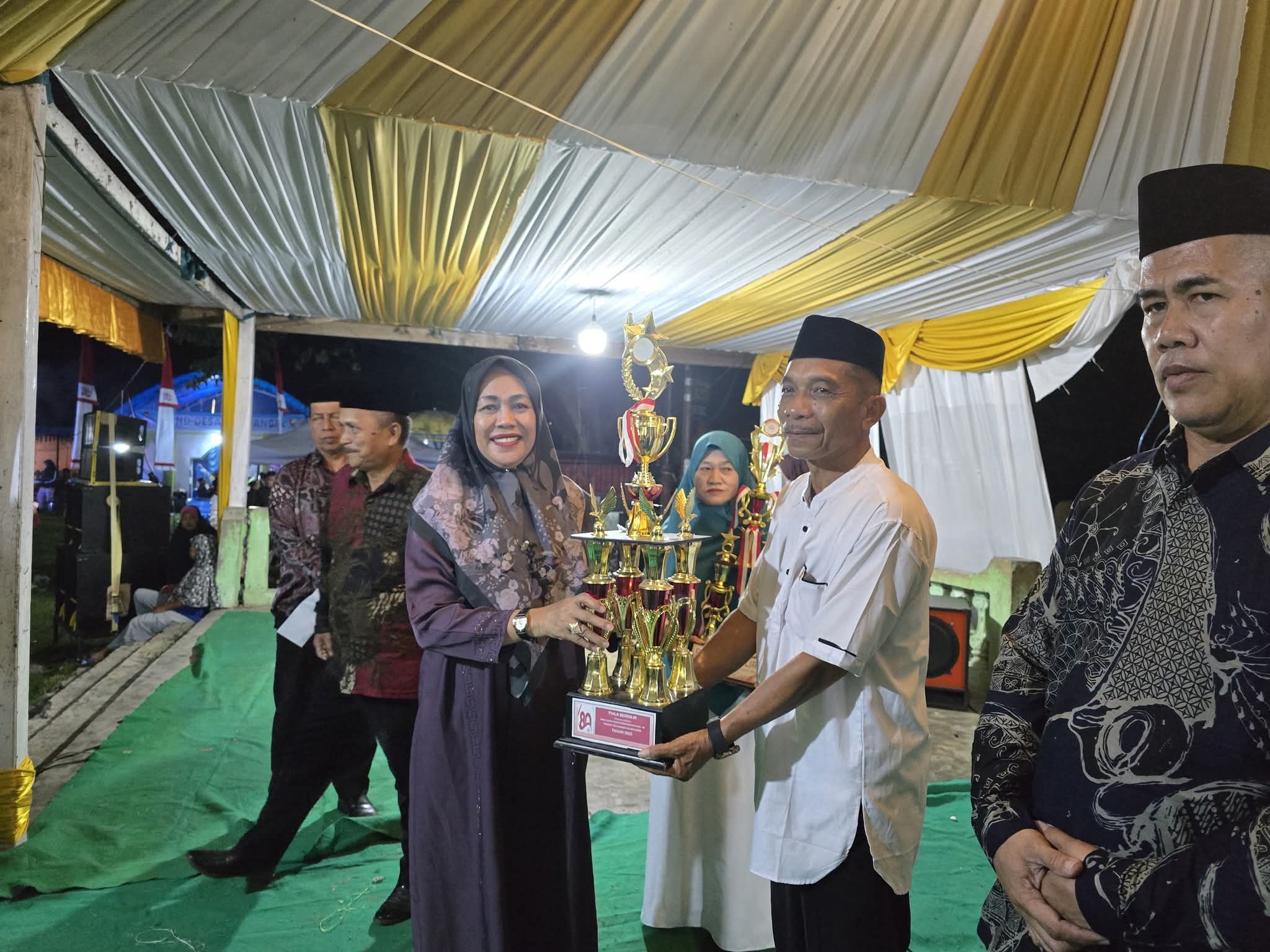 Bupati Majene,Dr H. Andi Achmad Syukri, SE, MM bersama Wakil Bupati Dr. Hj. Andi Rita Mariani, M. Pd menghadiri acara Ramah Tamah Pesta Rakyat yang dirangkaikan dengan Peringatan Maulid Nabi Muhammad SAW di Lapangan Tasinara, Malunda, Jumat malam (26 /92025).